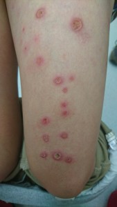 アトピー性皮膚炎でとびひのような発疹に見えてとびひの治療をしてもよくならないような時はこのお子さんのように、アトピーの悪化を考えステロイドの外用をするとよくなります